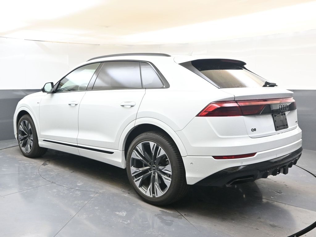 2025 Audi Q8 Prestige, Glacier White Metallic, Adaptive cruise assist with lane guidance, 3.0L V6 Turbocharged DOHC 24V LEV3-ULEV70 335hp, 8-Speed Automatic with Tiptronic, quattro, Black w/Leather Seating Surfaces or Valcona/Cricket Leather Seat Trim, 4-Zone Automatic Climate Control, Auto-dimming door mirrors, Auto-dimming Rear-View mirror, Bang & Olufsen 3D Premium Sound System, Black Optic Package, Comfort Adaptive Air Suspension, Convenience Package, Dual front side impact airbags, Dual-Pane Acoustic Glass for Side Windows, Executive Plus Package, Exterior Parking Camera Rear, Front fog lights, Front Seats w/Ventilation, Garage door transmitter: HomeLink, HD Matrix-Design LED Headlights w/Audi Laser Light, Head-Up Display, Heated door mirrors, Heated Front Bucket Seats, Heated Rear Seats, Heated Steering Wheel, Intersection Assist, LED Interior Lighting Plus Package, Memory seat, Navigation system: Audi MMI Navigation with Touch Response, Power Liftgate, Power moonroof: Panoramic, Power Rear Side Windows, Power Soft-Closing Doors, Prestige Package, Rain sensing wipers, Remote Park Assist Plus, S Line Style Package, Top View Camera System w/Virtual 360 View, Trailer Hitch, Wheels: 22" 5-Double-Arm Design Bicolor Finish, Wireless Phone Charging Pad.