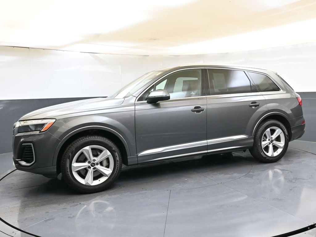 2025 Audi Q7 Premium, Samurai Gray Metallic, Adaptive cruise assist with lane guidance, 3.0L TFSI V6 engine, 8-Speed Automatic with Tiptronic, quattro, Okapi Brown w/Leather Seating Surfaces, 3rd row seats: bench, AM/FM radio: SiriusXM w/ 360L, Auto-dimming door mirrors, Auto-dimming Rear-View mirror, Dual front side impact airbags, Four-Zone Automatic Climate Control, Front fog lights, Garage door transmitter: HomeLink, Heated door mirrors, Heated Front Bucket Seats, Memory seat, Navigation System, Outside temperature display, Power Liftgate, Power moonroof: Panoramic, Radio: Audi Sound System, Rain sensing wipers, Rear fog lights, Telescoping steering wheel, Wheels: 19" 5-Arm-Star Design.