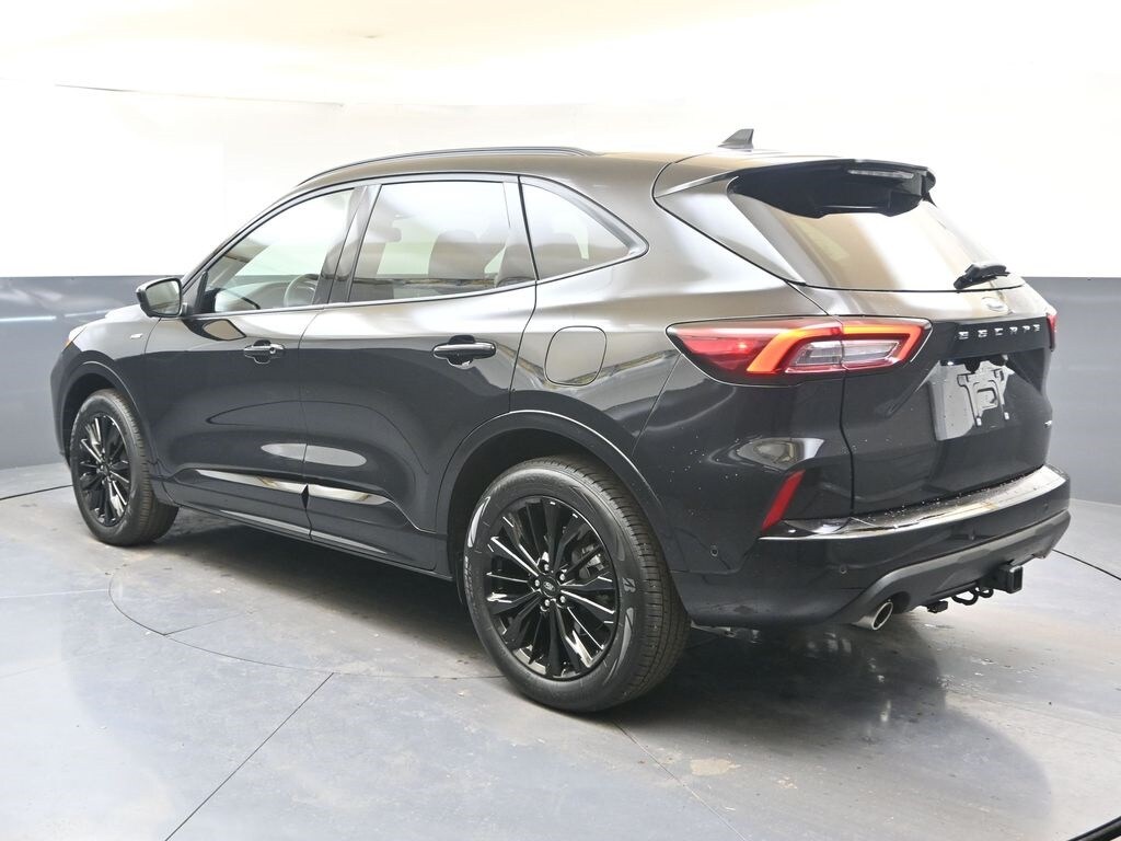 2024 Ford Escape ST-Line Elite, Agate Black Metallic, EcoBoost 2.0L I4 GTDi DOHC Turbocharged VCT, 8-Speed Automatic, AWD, Red / Ebony Leather, Active Park Assist 2.0, Alloy wheels, AM/FM radio: SiriusXM, Auto-dimming Rear-View mirror, Automatic temperature control, Black Roof-Rack Side Rails, Class II Trailer Tow Package, Compass, Dual front side impact airbags, Equipment Group 501A, Exterior Parking Camera Rear, Front fog lights, Head-Up Display, Heated door mirrors, Heated front seats, Heated Leather-Trimmed Front Sport Contour Seats, Heated steering wheel, Memory seat, Navigation system: Connected Navigation, Outside temperature display, Panoramic Vista Roof, Pedestrian Alert Sounder, Power Liftgate, Premium Technology Package, Radio: B&O Sound System by Bang & Olufsen, Rain sensing wipers, Roof rack: rails only, Telescoping steering wheel.